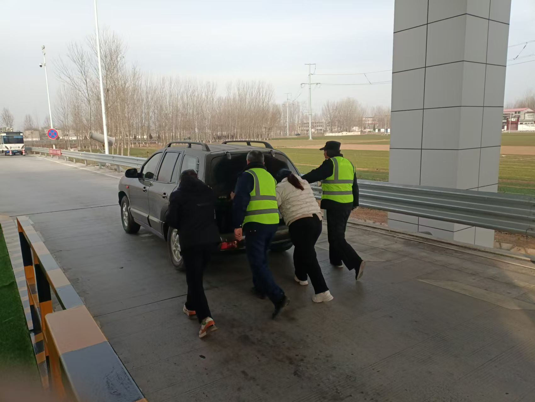 1月2日上午,内黄收费站收费员救助故障车辆,帮助驾驶员维修车辆受到赞扬。